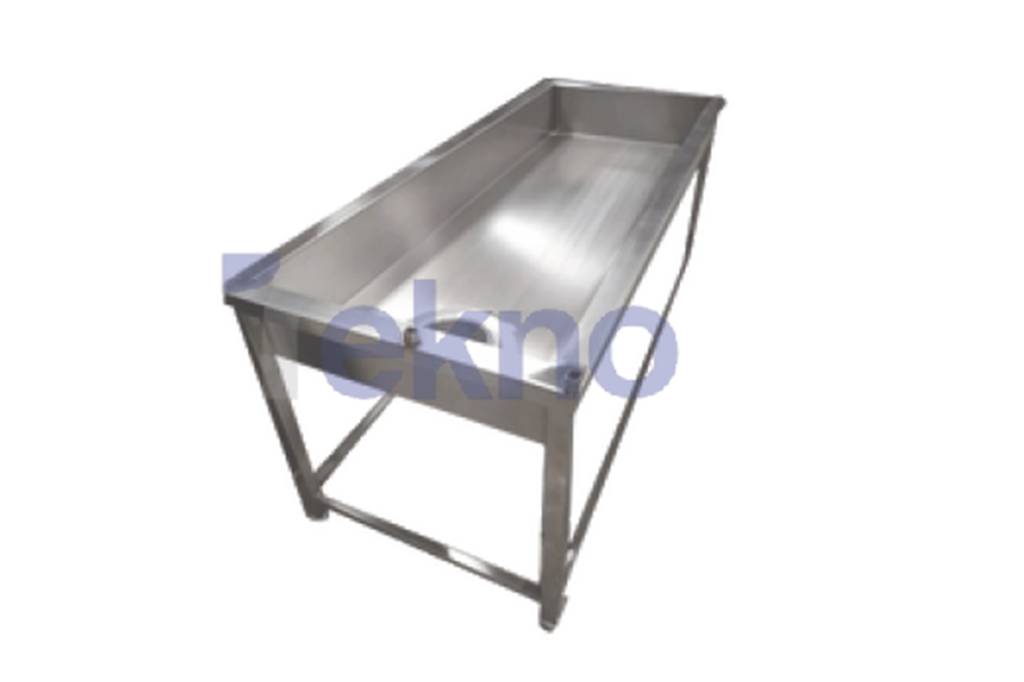 Meja ini difungsikan untuk menampung peralatan atau bahan yang belum dibersihkan. Material stainless steel menjadikannya tahan terhadap kelembaban serta mudah untuk dicuci. Dengan ukuran 1200x750x850/950mm, meja ini cukup luas untuk aktivitas persiapan. Tersedia opsi custom untuk menyesuaikan layout dapur.