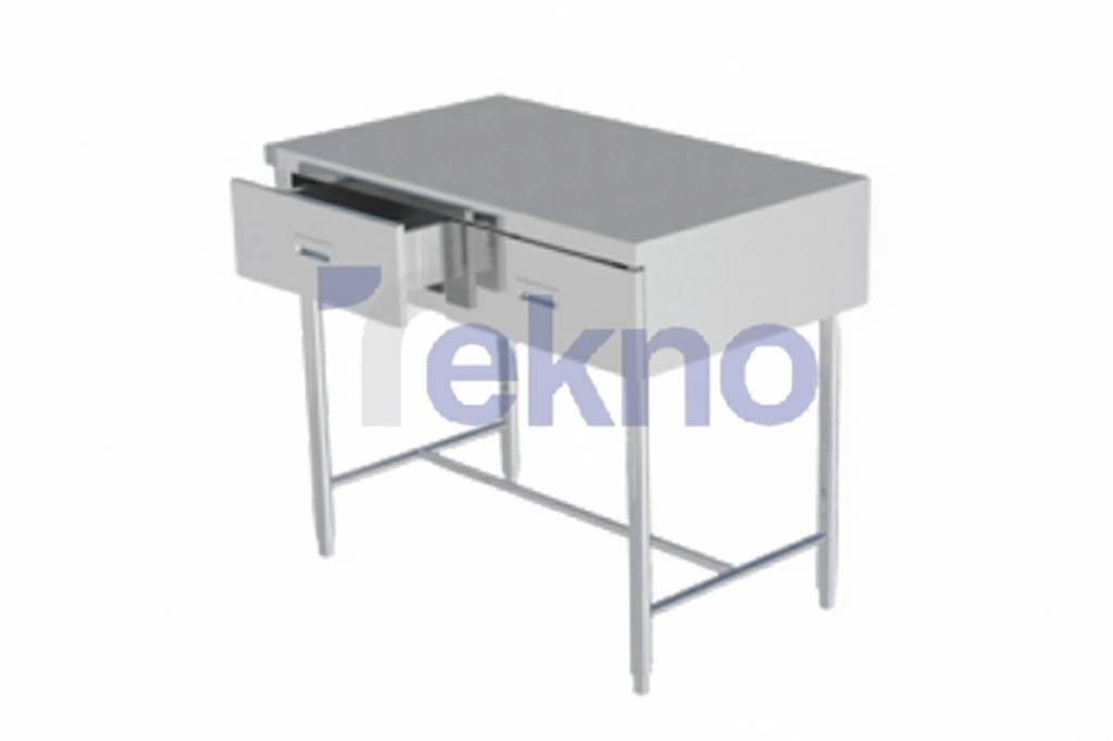 Meja stainless steel dengan desain terbuka di bagian depan serta dilengkapi dua laci penyimpanan memberikan fleksibilitas yang tinggi dalam penggunaan. Ukurannya 1000x600x850 mm, cukup luas untuk dijadikan area kerja sekaligus penyimpanan peralatan kecil maupun dokumen penerimaan barang. Material stainless steel memastikan permukaan mudah dibersihkan, tahan karat, dan mampu menahan beban kerja harian yang cukup berat. Dengan adanya laci tambahan, staf dapat menata perlengkapan kerja dengan lebih rapi dan terorganisir.